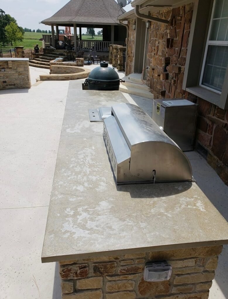 Turn your backyard into a destination. We design and build fully functional outdoor kitchens featuring built-in grills, pizza ovens, and durable granite countertops that withstand the Oklahoma weather.